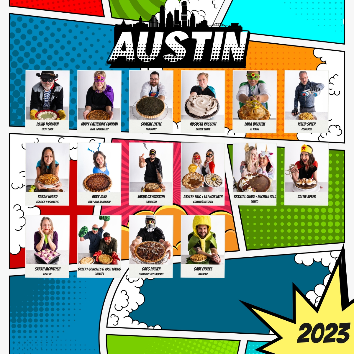 Each chef has infused creativity and bold flavors into their pies to match this year’s superhero theme. From the savory to the sweet, you won’t find ordinary pie flavors here. Highlights include Chef Steve Deshazo’s Chocolate Stout Beef Pie, Chef Nikky Phinyawatana’s Shrimp Panang Pie, and Chef John Tesar’s bold and luxurious Caviar Pie.